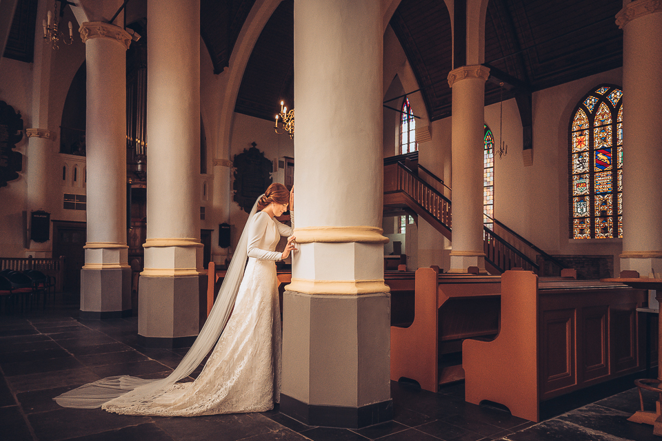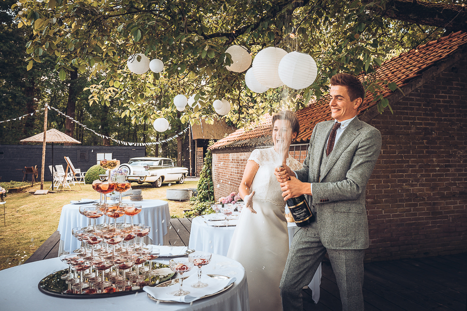 Het was nog stil en vroeg in de ochtend toen Jan achter het bruidspaar aanreed naar de fotolocatie: het karakteristieke kasteel Weldam nabij Diepenheim in Twente.