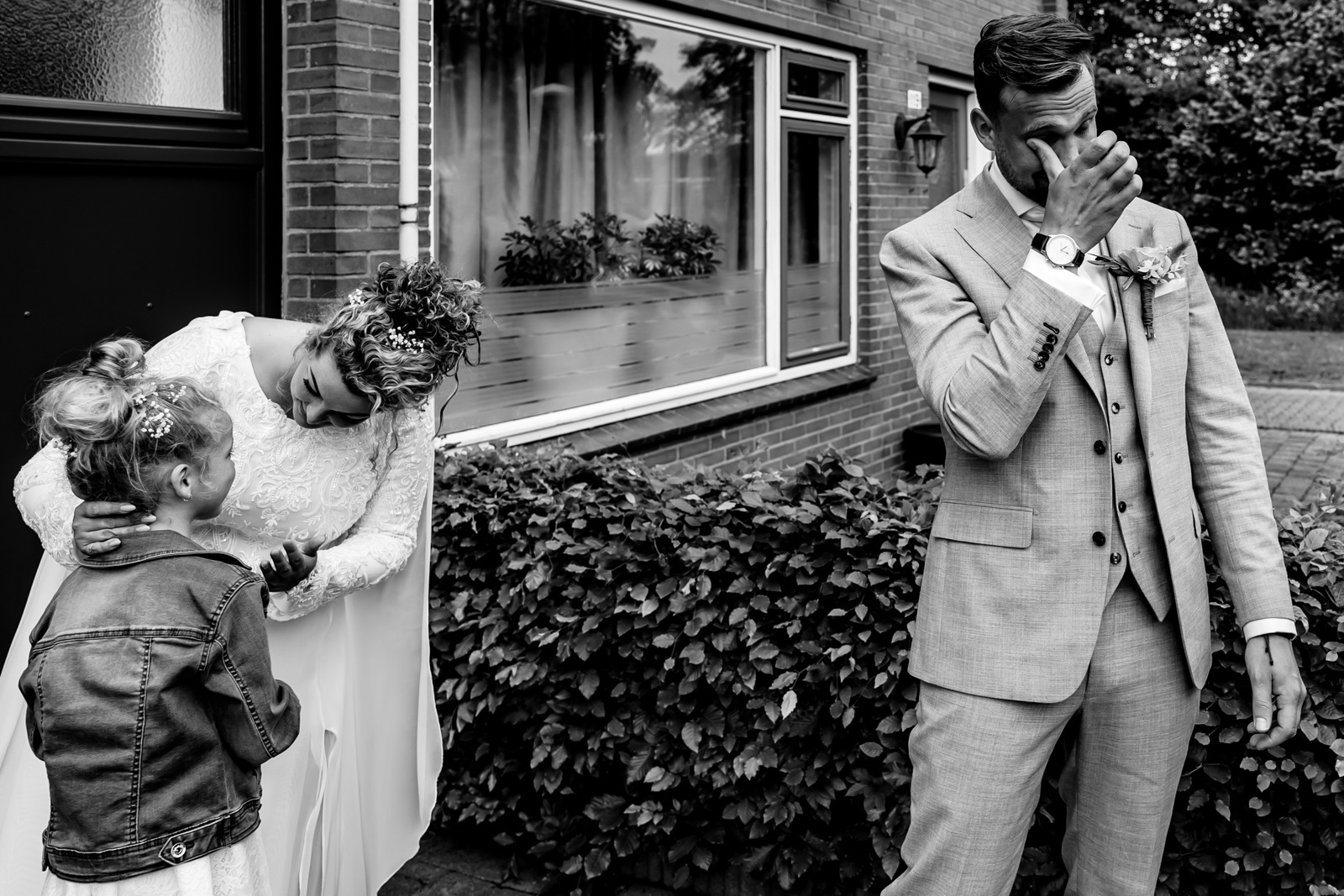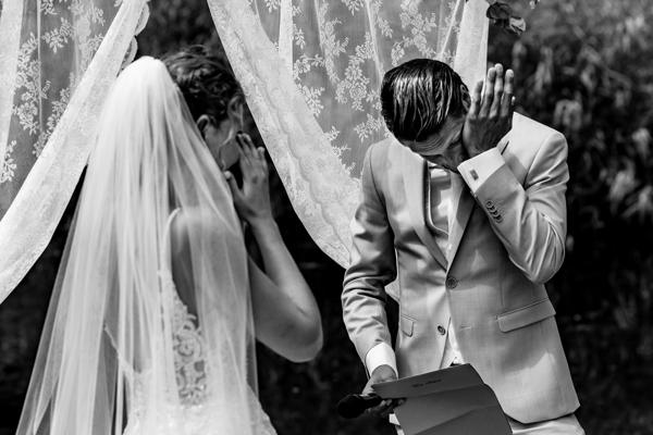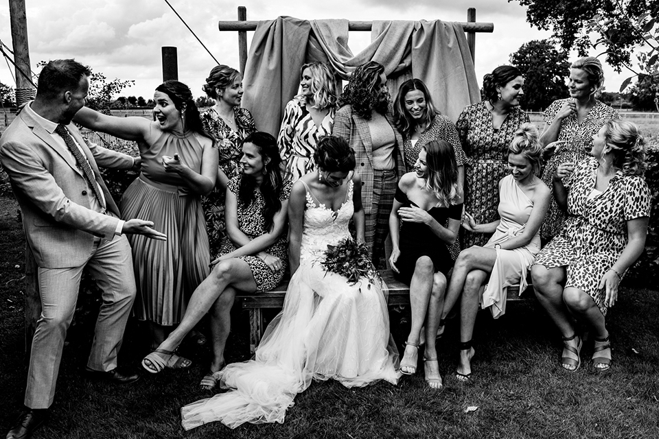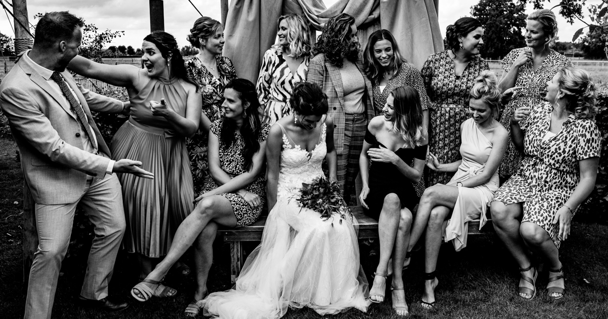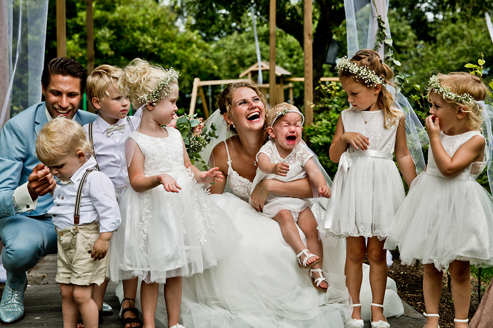 Ik ken deze bruid al vanaf dat we tegelijk zwanger waren in 2009, via een online zwangerschapsforum. Super vereerd was ik toen ze – inmiddels 3 kindjes rijker – mij in 2017 vroeg om hun bruiloft te fotograferen! Ik ken de bruid als een vrijgevochten dame die weet wat ze wil en zich niks aantrekt van wat anderen daarvan vinden. Ik keek dan ook uit naar hun bruiloft, want als er iets is wat ik gaaf vind om te doen, is die échte oprechte en authentieke emoties en momenten vangen.