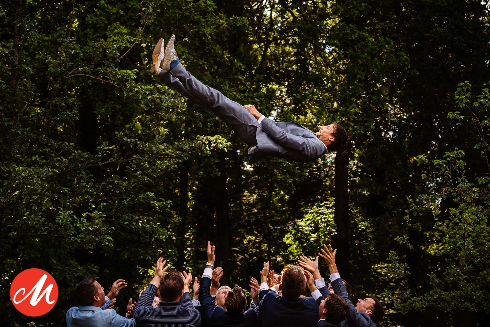 Stephan won eerder een award met een rennende bruidegom die op het strand achterna werd gezeten door tien dames. Die foto heeft veel bruidsparen geïnspireerd waardoor hij tegenwoordig steeds vaker de vraag krijgt om “iets leuks” te doen met de groepsfoto’s.
