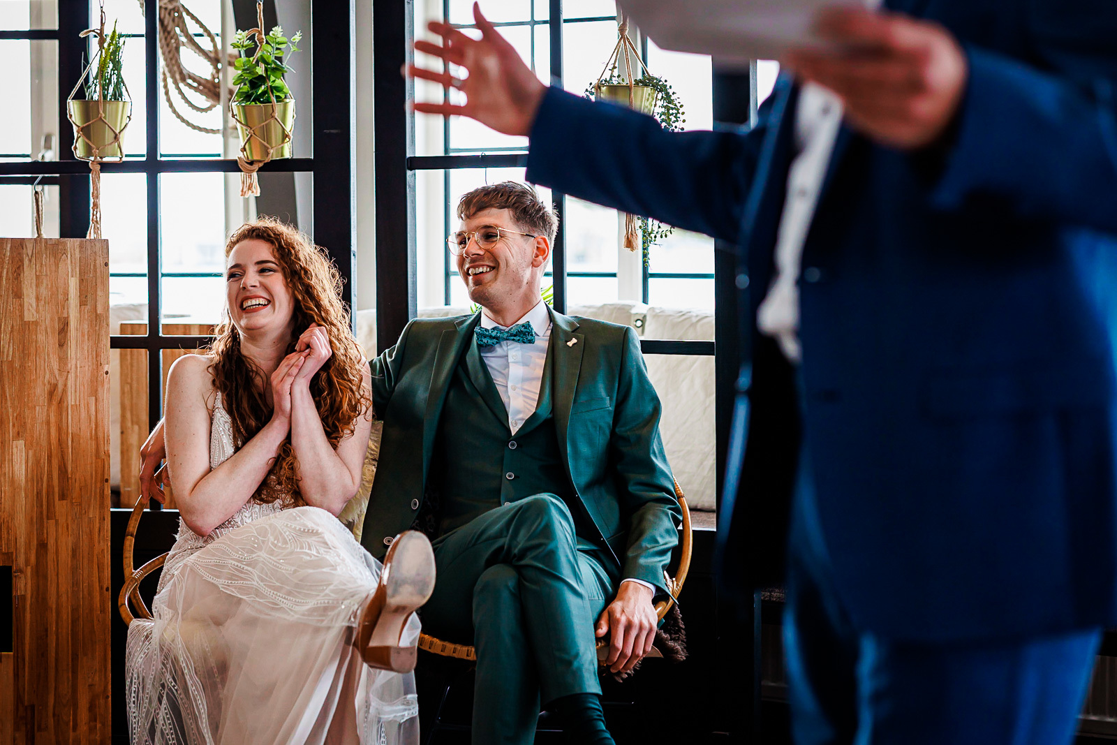 Wij hadden meteen een goed gevoel bij onze eerste ontmoeting met Teun. Mooie voorbeelden, duidelijke uitleg en Teun is ook gewoon een gezellig persoon. Op onze trouwdag was Teun aanwezig en toch ook “niet”. Tijdens onze ceremonie hebben wij hem vrijwel niet opgemerkt, terwijl hij toch echt veel mooie foto’s heeft gemaakt. Naast de standaard momenten van onze bruiloft, zaten er ook veel verrassingen tussen de foto's. We zijn erg blij met alle spontane foto’s van de dag!